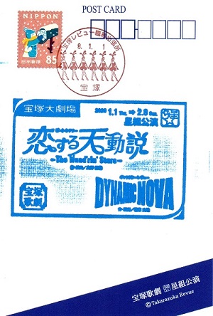 ご朱印帳を忘れてしまったのでキャトルレーヴで絵葉書を買い、初日公演観劇の記念にレビュー郵便局で令和8年1月1日の消印を押してもらいました。