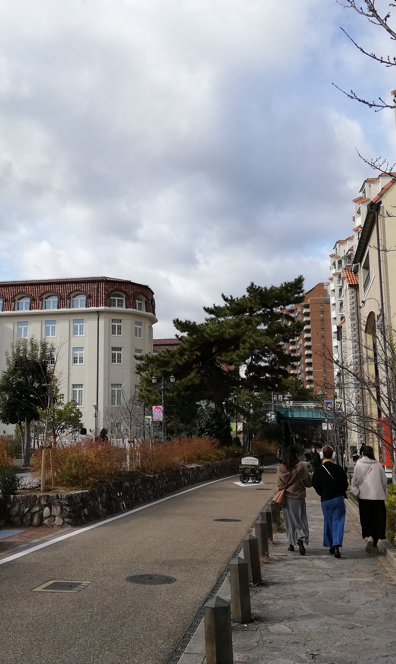 花のみち、冬曇りの空に時折り陽が射します。