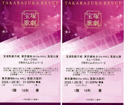 宝塚歌劇団・月組公演『侍タイムスリッパー』、大阪公演の初日S席1階18列の宝塚歌劇チケット、宝塚友の会抽選販売で購入しました。