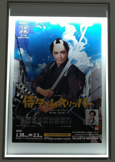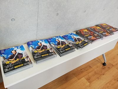 『侍タイムスリッパー』と次回月組公演『RYOFU』のフライヤーが山積みでした。