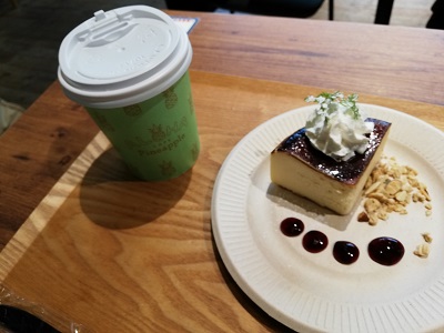 観劇後、カフェレストラン「ALOHA CAFE Pineapple みのお船場店」でホット珈琲とチーズケーキをいただきました。