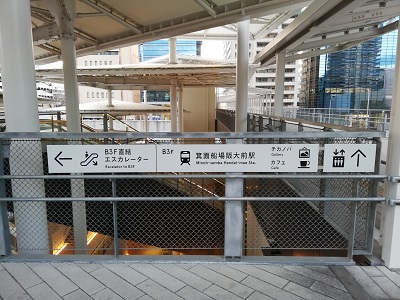 東京建物 Brillia HALL 箕面の表示が見えますが、ここの階段を降りてはいけません。