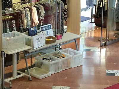 左側に村上社長がお出迎え、その隣にプレゼントBOXお手紙はこちらのカゴ