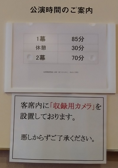 初日公演の上演時間の案内、写真を撮るために列になっているので、すぐ分かります。
