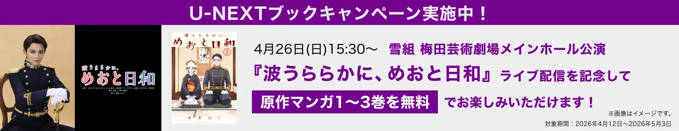 宝塚歌劇団・雪組公演の『波うららかに、めおと日和』ライブ配信を記念して、原作マンガ1~3巻を無料で読むことができます。